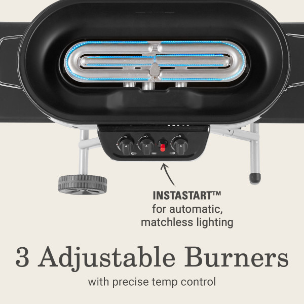 The Coleman RoadTrip 285 Standup Propane Gas Grill features sturdy quick-fold legs and wheels for hassle-free setup and takedown, making it easy to take your grill on a camping trip or to a tailgate. You’ll also enjoy matchless lighting with the Instastart push-button ignition system and more precise temperature control with the improved technology on three adjustable burners.