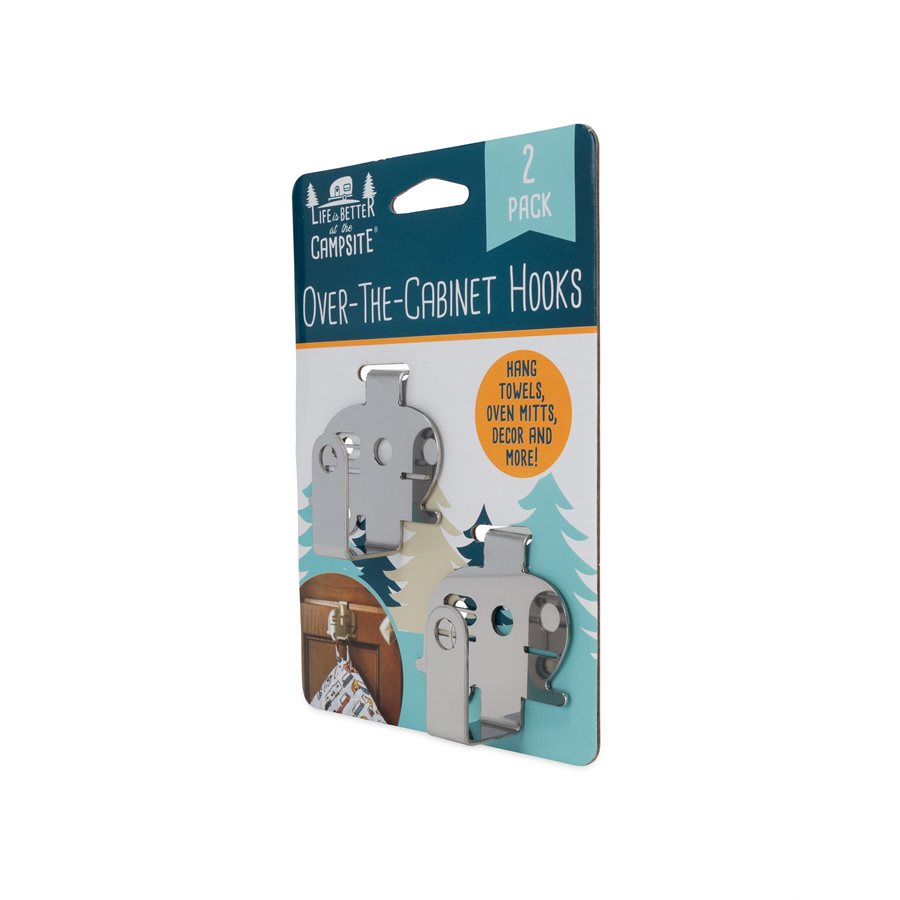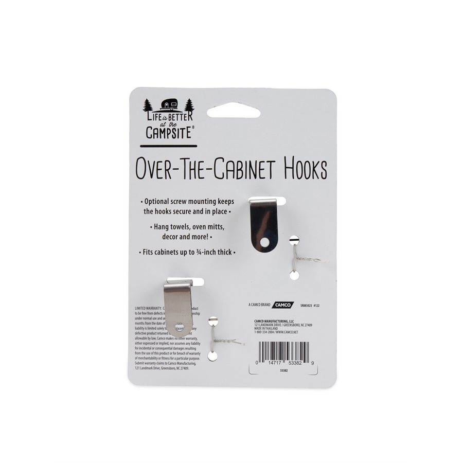 Camco Over-the-Cabinet Towel Hooks – Stainless Steel/Silver Retro RV Design (Set of 2)