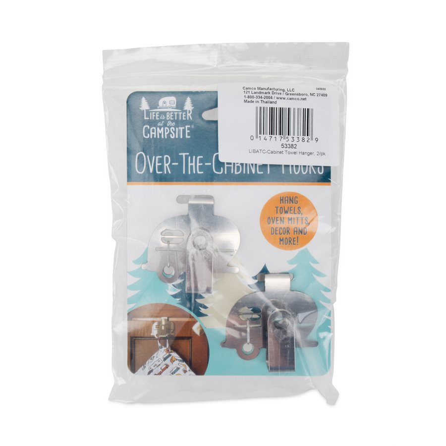 Add a stylish and practical touch to your RV or camper with the Camco “Life Is Better At The Campsite™” Stainless Steel Towel Rack – designed specifically for the RV lifestyle. This set of two versatile over-the-cabinet door hooks is ideal for keeping towels, oven mitts, pot holders, or campsite décor neatly within reach. Made from durable stainless steel and featuring a charming silver retro RV design, these hooks offer both form and function while maximizing limited storage space inside your RV or travel trailer. Perfect for cabinet doors up to ¾ inch thick, each hook simply slips over the door edge—no tools, drilling, or adhesive required. Whether you’re organizing in the kitchen, bathroom, or entryway, these hooks make efficient storage simple. Their sleek, space-saving layout is ideal for compact environments such as RVs, trailers, and motorhomes, and they’ll blend seamlessly with your rig’s interior while adding a nostalgic camping flair.