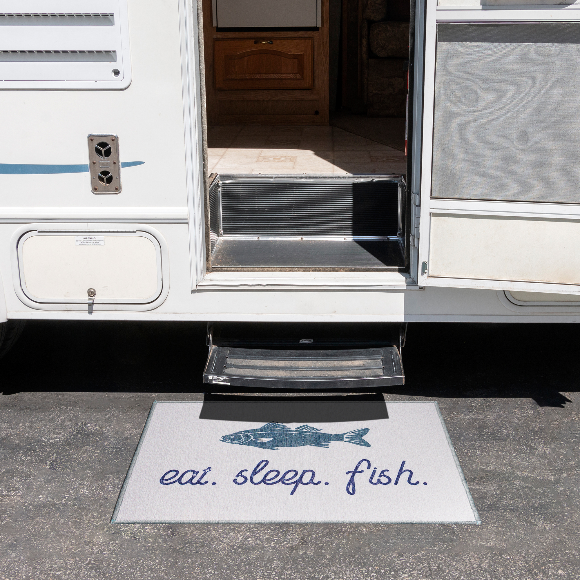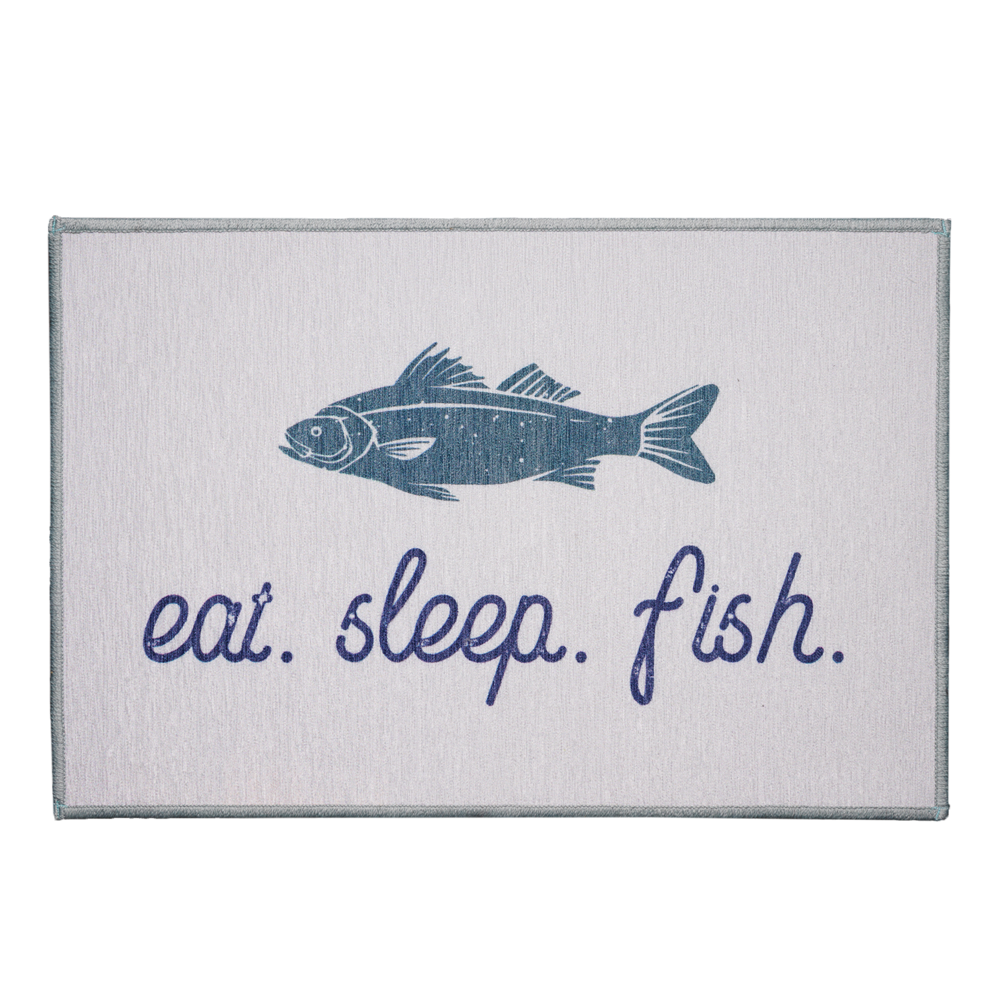 • Bold Decorative Print: “Eat Sleep Fish” design adds personality and outdoor charm to your entryway.